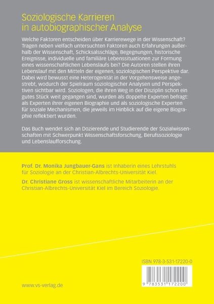 Welche Faktoren entscheiden über Karrierewege in der Wissenschaft? Tragen neben vielfach untersuchten Faktoren auch Erfahrungen außerhalb der Wissenschaft, Schicksalsschläge, Begegnungen, historische Ereignisse, individuelle und familiäre Lebenssituationen zur Formung eines wissenschaftlichen Lebenslaufs bei? Die Autoren stellen ihren Lebenslauf mit den Mitteln der eigenen, soziologischen Perspektive dar. Dabei wird bewusst eine Heterogenität in der Vorgehensweise angestrebt, wodurch der Spielraum soziologischer Analysen und Perspektiven sichtbar wird. Soziologen, die ihren Weg in der Disziplin schon ein gutes Stück weit gegangen sind, wurden als doppelte Experten befragt: als Experten ihrer eigenen Biographie und als soziologische Experten für soziale Mechanismen, die jeweils im Hinblick auf die eigene Biographie reflektiert wurden.