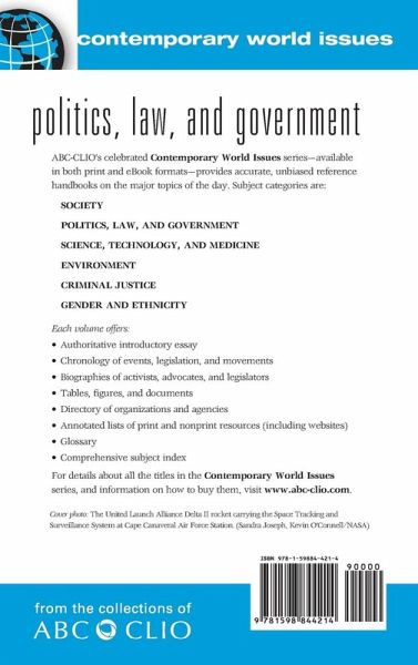 List of Tables Preface 1 Background and History U.S. Space Policy before Sputnik Sputnik Changes Everything 1957-1963 The Moon Race and Sanctuary Supreme 1964-1980 Space Comes of Age 1981-Present References Notes 2 Problems Controversies and Solutions Space and Military Transformation Space Regulation and Export Controls Space and Missile Defense References Note 3 Worldwide Perspectives Space Law and the Advancement of Spacepower Space Weaponization Congested Space: Spectrum Crowding SSA and Orbital Debris China as an Emerging Space Power References 4 Chronology 5 Biographical Sketches James A. Abrahamson Edward C. Aldridge ("Pete") Norman R. Augustine James M. Beggs George H. W. Bush George W. Bush Stephen A. Cambone James E. Carter Jr. William J. Clinton Hugh L. Dryden Dwight D. Eisenhower Howell M. Estes III James C. Fletcher Gerald R. Ford T. Keith Glennan Daniel S. Goldin Daniel O. Graham Michael D. Griffin Richard C. Henry Robert T. Herres Robert Jastrow Lyndon B. Johnson John F. Kennedy George A. Keyworth II James R. Killian Jr. George Kistiakowsky Hans M. Mark Neil H. McElroy Robert S. McNamara John B. Medaris Thomas S. Moorman Jr. Richard M. Nixon Barack H. Obama Thomas O. Paine Samuel C. Phillips John L. Piotrowski Donald A. Quarles Ronald W. Reagan Donald H. Rumsfeld Bernard A. Schriever Wernher von Braun James E. Webb Caspar W. Weinberger Thomas D. White Jerome B. Wiesner 6 Data and Documents Documents NSC-5520 "Draft Statement of Policy on U. S. Scientific Satellite Program " NSC-5814 "U.S. Policy on Outer Space " National Aeronautics and Space Act of 1958 Department of Defense Directive 5160.32 "Development of Space Systems " National Security Decision Memorandum 345 "Development of Anti-Satellite Capability " Department of Defense Directive 3100.10 "Space Policy " "Fact Sheet: U.S. Commercial Remote Sensing Policy " "Fact Sheet: U.S. Space-Based Positioning Navigation and Timing Policy " "National Space Policy of the United States of America " 7 Directory of Organizations U.S. Organizations 8 Resources Books Chapters in Books and Monographs Journal Articles Periodicals Congressional Hearings and Reports Government Documents Studies and Technical Reports Documents from NSC Box at National Archives Washington D.C. Newspaper Articles Internet Sources List of Acronyms Index About the Author