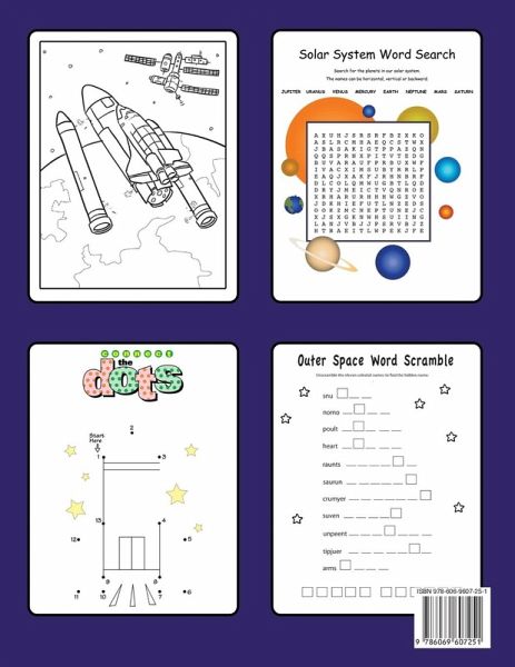 The awesome space and science activity book for kids! Our activity book features outer space coloring with planets, astronauts, spaceships, rockets, and fun activities like word search, mazes, word scramble and more! What you get in this book: ¿¿ 8.5 x 11 inches format, large print ¿¿ Single sided pages to avoid bleed through ¿¿ Color the pages with a crayon, pen, marker and / or crayon of your choice. ¿¿ Coloring fun & educational activities guaranteed ¿¿ Ideal as a gift Kws: activity books for kids ages 4-8, kids activity books ages 4-8, kids activity books, kindergarten activity book, children activity books, coloring book space, space coloring book kids, kids coloring activity books, space coloring books, space activities for kids, activity coloring books for kids, planet coloring book, kids coloring activity book, space activity, kids space activity book