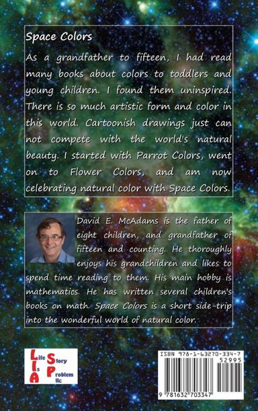 As a grandfather to fifteen, I had read many books about colors to toddlers and young children. I found them uninspired. There is so much artistic form and color in this world. Cartoonish drawings just can not compete with the world's natural beauty. I started with Parrot Colors, went on to Flower Colors, and am now celebrating natural color with Space Colors.