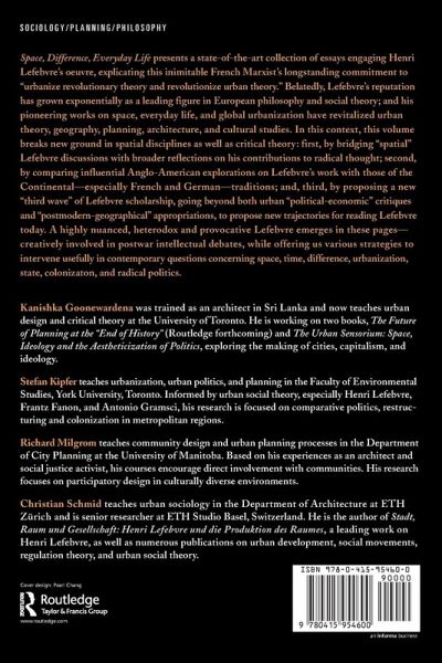 Kanishka Goonewardena was trained as an architect in Sri Lanka and now teaches urban design and critical theory at the University of Toronto. He is working on two books, The Future of Planning at the "End of History" (forthcoming from Routledge) and The Urban Sensorium: Space, Ideology and the Aestheticization of Politics, exploring the making of cities, capitalism, and ideology. Stefan Kipfer teaches urbanization, urban politics, and planning in the Faculty of Environmental Studies, York University, Toronto. Informed by urban social theory, especially Henri Lefebvre, Frantz Fanon, and Antonio Gramsci, his research is focused on comparative politics, restructuring and colonization in metropolitan regions. Richard Milgrom teaches community design and urban planning processes in the Department of City Planning at the University of Manitoba. Based on his experiences as an architect and social justice activist his courses encourage direct involvement with communities. His research focuses on participatory design in culturally diverse environments. Christian Schmid is lecturer for urban sociology in the Department of Architecture ETH Zürich and senior researcher at ETH Studio Basel, Switzerland. He is the author of Stadt, Raum und Gesellschaft: Henri Lefebvre und die Produktion des Raumes, a leading work on Henri Lefebvre, as well as numerous publications on urban politics, social movements, regulation theory and urban social theory.