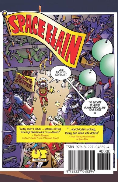 Space Elain and Hot Rod Cow are Kev F's space-adventuring comedy characters, with lots of aliens, space guns, rocket pants, and more aliens! In this fun filled adventures they take you to all corners of the unknown universe, and are very silly in the process. Here's what Peter Duncan had to say about Space Elain's appearance in Wallop Annual No 1, on Down The Tubes: "Kev Sutherland, who played a major role in persuading Brian and John to produce this lovely hardcover, has given them the real gem of the collection, "Space Elain" - basically, a "how to" guide to funny adventure comics for kids. It's spectacular looking, funny and filled with action - and could usefully find a place in any comic for kids." His words, not mine. A "how to guide in funny adventure comics for kids"? Remember where you read it first! Previous reviews for Kev F's comic books: "...really smart & clever... seamless riffing from high Shakespeare to low demotic." - Martin Rowson (on Prince Of Denmark Street) "A clever way in to Shakespeare. Recommend." - Anna, Etsy "I normally stay away from Shakespeare works but not this enjoyable and funny" - Debbie, Amazon "What an amazing and imaginative spin on a Shakespeare classic. Highly recommended!!!" - Chris R, Amazon "A genuine page-turner with more twists and turns than a contortionist playing twister on the Hampton Court Palace Maze schematics after downing a dozen Red Bulls. Highly recommended!" - Laurence, Amazon "Another brilliant book from Kev. He brings Shakespeare to life in a new, fun and interesting way - updated for the 21st century in his own unique way. I love his books!!" - Pixies & Me, Etsy