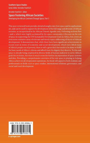 This peer-reviewed book provides detailed insights into how space and its applications are, and can be used to support the development of the full range and diversity of African societies, as encapsulated in the African Union's Agenda 2063. Following on from Part 1 and 2, which were highly acclaimed by the space community, it focuses on the role of space in supporting the UN Sustainable Development Goals in Africa, but covers an even more extensive array of relevant and timely topics addressing all facets of African development. It demonstrates that, while there have been significant achievements in recent years in terms of economic and social development, which have lifted many of Africa's people out of poverty, there is still a great deal that needs to be done to fulfill the basic needs of Africa's citizens and afford them the dignity they deserve. To this end, space is already being employed in diverse fields of human endeavor to serve Africa's goals for its future, but there ismuch room for further incorporation of space systems and data. Providing a comprehensive overview of the role space is playing in helping Africa achieve its developmental aspirations, the book will appeal to both students and professionals in fields such as space studies, international relations, governance, and social and rural development.