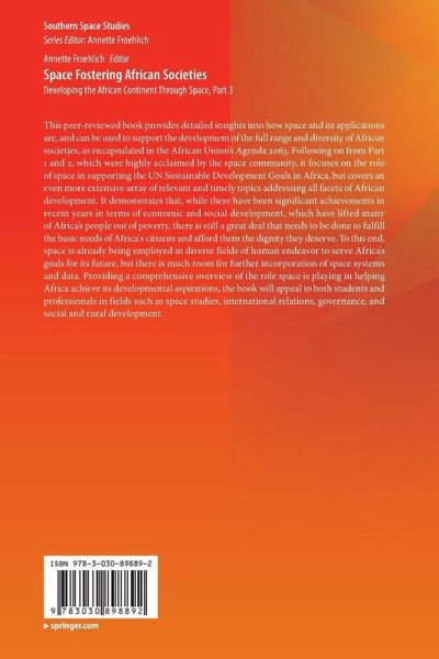 This peer-reviewed book provides detailed insights into how space and its applications are, and can be used to support the development of the full range and diversity of African societies, as encapsulated in the African Union's Agenda 2063. Following on from Part 1 and 2, which were highly acclaimed by the space community, it focuses on the role of space in supporting the UN Sustainable Development Goals in Africa, but covers an even more extensive array of relevant and timely topics addressing all facets of African development. It demonstrates that, while there have been significant achievements in recent years in terms of economic and social development, which have lifted many of Africa's people out of poverty, there is still a great deal that needs to be done to fulfill the basic needs of Africa's citizens and afford them the dignity they deserve. To this end, space is already being employed in diverse fields of human endeavor to serve Africa's goals for its future, but there ismuch room for further incorporation of space systems and data. Providing a comprehensive overview of the role space is playing in helping Africa achieve its developmental aspirations, the book will appeal to both students and professionals in fields such as space studies, international relations, governance, and social and rural development.