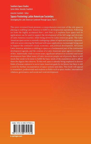 This peer-reviewed book presents a comprehensive overview of the role space is playing in enabling Latin America to fulfill its developmental aspirations. Following on from the highly acclaimed Part 1 and Part 2, it explains how space and its applications can be used to support the development of the full range and diversity of Latin America societies, while being driven by Latin American goals. The Latin American space sector is currently undergoing a phase of rapid and dynamic expansion, with new actors entering the field and with space applications increasingly being used to support the continent's social, economic, and political development. All across Latin America, attention is shifting to space as a fundamental part of the continental development agenda, and the creation of a Latin American space agency is evidence of this. Additionally, while in recent years, significant advances in economic and social development have lifted many of Latin America's people out of poverty, there is still much that needs to be done to fulfill the basic needs of the population and to afford them the dignity they deserve. To this end, space is already being employed in diverse fields of human endeavor to serve Latin America's goals for its future, but there is still a need for further incorporation of space systems and data. This book will appeal to researchers, professionals and students in fields such as space studies, international relations, governance, and social and rural development.