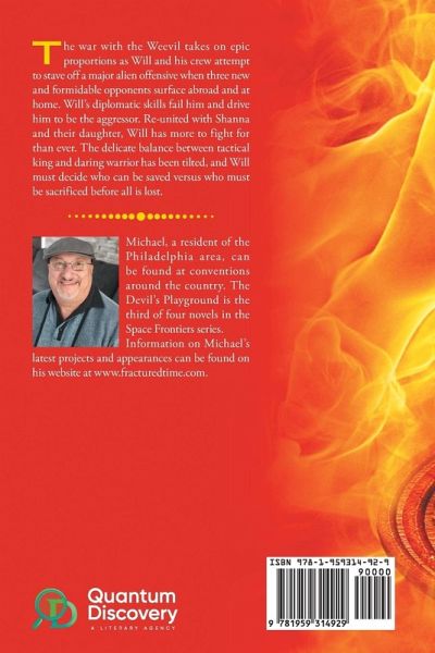 The war with the Weevil takes on epic proportions as Will and his crew attempt to stave off a major alien offensive when three new and formidable opponents surface abroad and at home. Will's diplomatic skills fail him and drive him to be the aggressor. Re-united with Shanna and their daughter, Will has more to fight for than ever. The delicate balance between tactical king and daring warrior has been tilted, and Will must decide who can be saved versus who must be sacrificed before all is lost. Michael, a resident of the Philadelphia area, can be found at conventions around the country. The Devil's Playground is the third of four novels in the Space Frontiers series. Information on Michael's latest projects and appearances can be found on his website at www.fracturedtime.com.
