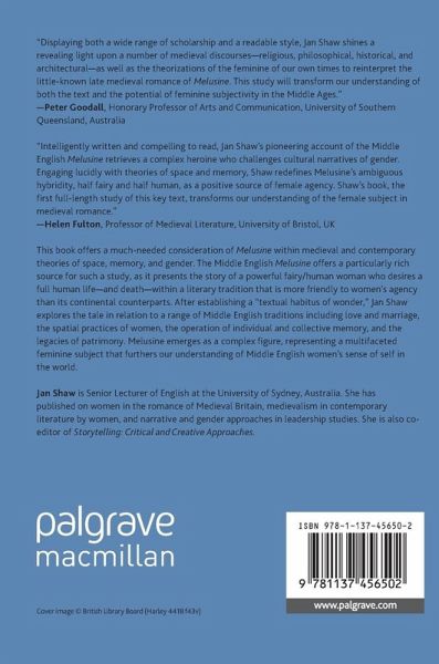 "The story of the beautiful fairy Mélusine who is cursed by her own mother to transform into a half-serpent once a week has fascinated readers for centuries. ... Shaw's analysis covers an impressive range of modern and medieval concepts ... . Shaw's work lays a good and highly promising foundation for future discussions about this text, and about feminine subjectivity in Middle English romance more broadly." (Lydia Zeldenrust, Modern Language Review, Vol. 133 (2) April, 2018)
