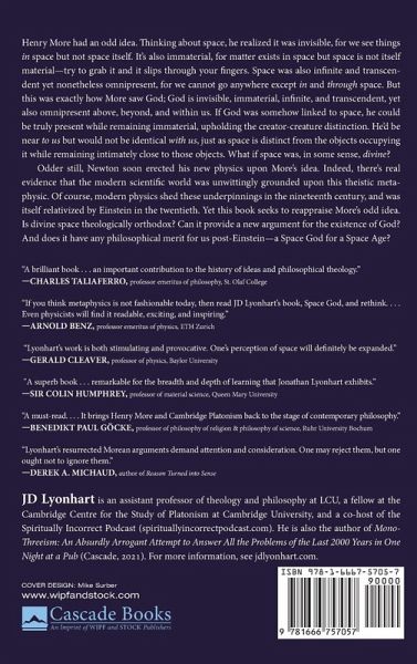 Henry More had an odd idea. Thinking about space, he realized it was invisible, for we see things in space but not space itself. It's also immaterial, for matter exists in space but space is not itself material--try to grab it and it slips through your fingers. Space was also infinite and transcendent yet nonetheless omnipresent, for we cannot go anywhere except in and through space. But this was exactly how More saw God; God is invisible, immaterial, infinite, and transcendent, yet also omnipresent above, beyond, and within us. If God was somehow linked to space, he could be truly present while remaining immaterial, upholding the creator-creature distinction. He'd be near to us but would not be identical with us, just as space is distinct from the objects occupying it while remaining intimately close to those objects. What if space was, in some sense, divine? Odder still, Newton soon erected his new physics upon More's idea. Indeed, there's real evidence that the modern scientific world was unwittingly grounded upon this theistic metaphysic. Of course, modern physics shed these underpinnings in the nineteenth century, and was itself relativized by Einstein in the twentieth. Yet this book seeks to reappraise More's odd idea. Is divine space theologically orthodox? Can it provide a new argument for the existence of God? And does it have any philosophical merit for us post-Einstein--a Space God for a Space Age?