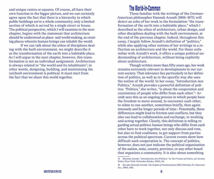In "Space is Politics" zeigt Hans Teerds, dass Raum nicht nur die Voraussetzung für politische Praxis ist - er ist politisch. Anhand der politischen Theorie Hannah Arendts entfaltet Teerds ein leidenschaftliches Plädoyer dafür, Architektur als gesellschaftliche Praxis zu verstehen, die nicht bloß gestaltet, sondern beeinflusst, wer sich begegnet, wer teilhaben darf - und wer ausgeschlossen wird. Demokratie lebt vom Miteinander, vom physischen Aufeinandertreffen im öffentlichen Raum: auf Plätzen, in Parks, auf Gehwegen und vor Cafés. Diese Räume sind keine Kulisse, sondern zentrale Orte demokratischer Praxis. Doch wer entscheidet, wie sie gestaltet werden? Wer darf bleiben - und wer wird verdrängt? Teerds zeigt: Architektur ist nie neutral. Sie definiert Grenzen, schafft Zugänge - und Barrieren. Damit ist sie immer auch eine politische Handlung. Die Frage, wer Raum beanspruchen darf, ist zutiefst demokratisch. Space is Politics fordert eine Rückeroberung des öffentlichen Raums in die gesellschaftliche Debatte - aus den Händen von Investoren und Experten zurück in die politische Öffentlichkeit. Ein Manifest für alle, die Architektur nicht als rein technische, sondern als zutiefst politische Aufgabe verstehen - und ein Weckruf an Architekt:innen, Stadtplaner:innen und Bürger:innen, Raum als Gemeingut zu denken und mitzugestalten.
