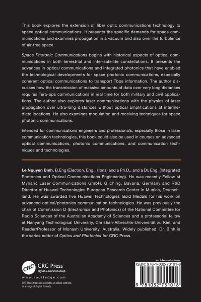 Chapter 1 Guided-Wave and Space Technologies Chapter 2 Space Atmospheric Signal Propagation and Effects on System Performance Chapter 3 Digital Binary Photonic Modulation for SPC Chapter 4 Multi-Level Complex Photonic Modulation Chapter 5 DSP-Based Optical Coherent Receiver for SPC: Physical Chapter 6 DSP-Based Optical Coherent Receiver for SPC: Processing and SPC Systems Performance Chapter 7 Optical Amplifiers and Routers for Space Photonic Transmission Chapter 8 Nonlinear Effects in SPC for DWDM Channel Transmission Chapter 9 SPC Power-Limited Quantum Transmission Chapter 10 SPC-Equivalent System Transmission Performance Chapter 11 Appendices 1 to 2: Optical Modulators, Integrated Lasers Chapter 12 Appendices 3 to 7: Fibre and Integrated Waveguides, EDFA Simulation, and ITU Grids