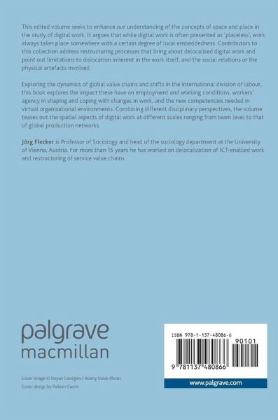 This edited volume seeks to enhance our understanding of the concepts of space and place in the study of digital work. It argues that while digital work is often presented as 'placeless', work always takes place somewhere with a certain degree of local embeddedness. Contributors to this collection address restructuring processes that bring about delocalised digital work and point out limitations to dislocation inherent in the work itself, and the social relations or the physical artefacts involved.
