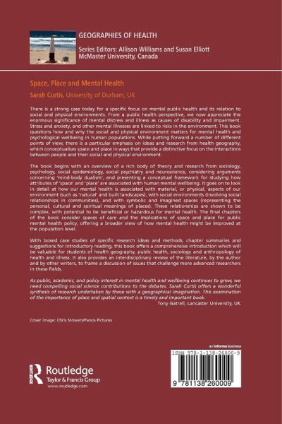 There is a strong case today for a specific focus on mental public health and its relation to social and physical environments. From a public health perspective, we now appreciate the enormous significance of mental distress and illness as causes of disability and impairment. Stress and anxiety, and other mental illnesses are linked to risks in the environment. This book questions how and why the social and physical environment matters for mental health and psychological wellbeing in human populations. While putting forward a number of different points of view, there is a particular emphasis on ideas and research from health geography, which conceptualises space and place in ways that provide a distinctive focus on the interactions between people and their social and physical environment. The book begins with an overview of a rich body of theory and research from sociology, psychology, social epidemiology, social psychiatry and neuroscience, considering arguments concerning 'mind-body dualism', and presenting a conceptual framework for studying how attributes of 'space' and 'place' are associated with human mental wellbeing. It goes on to look in detail at how our mental health is associated with material, or physical, aspects of our environment (such as 'natural' and built landscapes), with social environments (involving social relationships in communities), and with symbolic and imagined spaces (representing the personal, cultural and spiritual meanings of places). These relationships are shown to be complex, with potential to be beneficial or hazardous for mental health. The final chapters of the book consider spaces of care and the implications of space and place for public mental health policy, offering a broader view of how mental health might be improved at the population level. With boxed case studies of specific research ideas and methods, chapter summaries and suggestions for introductory reading, this book offers a comprehensive introduction which will be valuable for students of health geography, public health, sociology and anthropology of health and illness. It also provides an interdisciplinary review of the literature, by the author and by other writers, to frame a discussion of issues that challenge more advanced researchers in these fields.