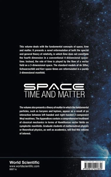 This volume deals with the fundamental concepts of space, time and matter. It presents a novel reformulation of both the special and general theory of relativity, in which time does not constitute the fourth dimesion in a conventional 4-dimensional space-time. Instead, the role of time is played by the flow of a vector field on a 3-dimesional space. The standard models of de Sitter, Schwarzschild and Kerr space-times are reformulated in a purely 3-dimensional manifold. The volume also presents a theory of Natter in which the fundamental particles, such as baryons and leptons, appear as a result of an interaction between left-handed and right-handed 2-component Weyl neutrinos. The Appendix contains a comprehensive treatment of classical mechanics in terms of Hamiltonian vector fields on symplectic manifolds. Graduate students of mathematical physics or theoretical physics, as well as academics, will find this volume of intrest.