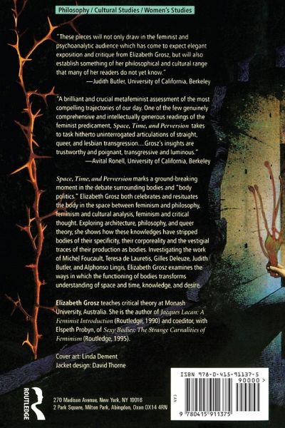 Exploring the fields of architecture, philosophy, and queer theory, Grosz shows how feminism and cultural analysis have conceptually stripped bodies of their specificity, their corporeality, and the vestigal traces of their production as bodies. She investigates the work of Michel Foucault, Teresa de Lauretis, Gilles Deleuze, Judith Butler and Alphonso Lingi, considering their work by examining the ways in which the functioning of bodies transforms understandings of space and time, knowledge and desire. Grosz moves toward a radical consideration of bodies and their relationship to transgression and perversity.