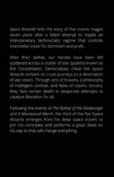 Following the events of The Ballad of the Bladesinger and A Moonwood March, the third of the five Space Wizards emerges from his deep space travels to join his comrades and performs a good deed on his way to that will change everything.