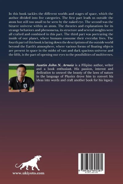 In this book tackles the different worlds and stages of space, which the author divided into five categories. The first part leads us outside the atom but still too small to be seen by the naked eye. The second was the bizarre universe within an atom. The theories and explanations for its strange behaviors and phenomena, its structure and several insights were all crafted and combined in this part. The third part was portraying the inside of our planet, where humans consume their everyday lives. The fourth part of this book is laying down the descriptions of the outside world beyond the Earth's atmosphere, where various forms of floating objects are present in space in the midst of vast and dark spacious universe and the fifth, is the part of opening our eyes to the possibilities of multiverses.