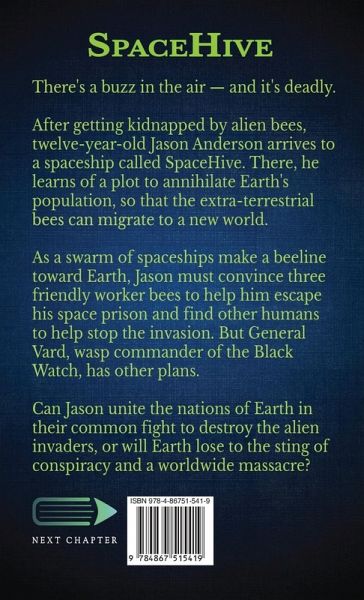 There's a buzz in the air - and it's deadly. After getting kidnapped by alien bees, twelve-year-old Jason Anderson arrives to a spaceship called SpaceHive. There, he learns of a plot to annihilate Earth's population, so that the extra-terrestrial bees can migrate to a new world. As a swarm of spaceships make a beeline toward Earth, Jason must convince three friendly worker bees to help him escape his space prison and find other humans to help stop the invasion. But General Vard, wasp commander of the Black Watch, has other plans. Can Jason unite the nations of Earth in their common fight to destroy the alien invaders, or will Earth lose to the sting of conspiracy and a worldwide massacre?