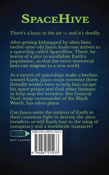 There's a buzz in the air - and it's deadly. After getting kidnapped by alien bees, twelve-year-old Jason Anderson arrives to a spaceship called SpaceHive. There, he learns of a plot to annihilate Earth's population, so that the extra-terrestrial bees can migrate to a new world. As a swarm of spaceships make a beeline toward Earth, Jason must convince three friendly worker bees to help him escape his space prison and find other humans to help stop the invasion. But General Vard, wasp commander of the Black Watch, has other plans. Can Jason unite the nations of Earth in their common fight to destroy the alien invaders, or will Earth lose to the sting of conspiracy and a worldwide massacre?