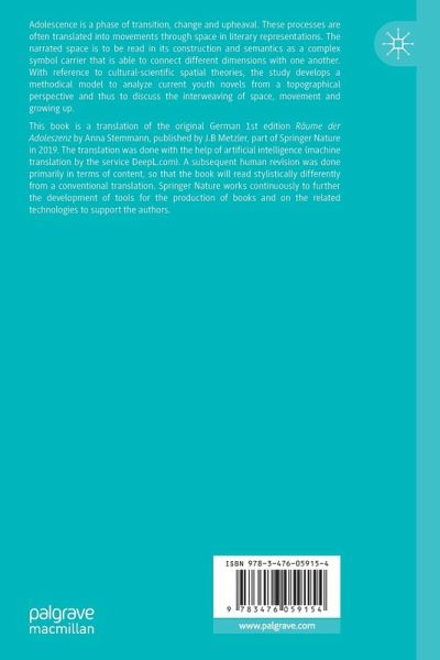 This book is a translation of the original German 1st edition Räume der Adoleszenz by Anna Stemmann, published by J.B. Metzler, part of Springer Nature in 2019. The translation was done with the help of artificial intelligence (machine translationby the service DeepL.com). A subsequent human revision was done primarily in terms of content, so that the book will read stylistically differently from a conventional translation. Springer Nature works continuously to further the development of tools for the production of books and on the related technologies to support the authors.