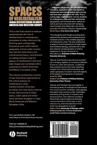 "Exploring 'the spaces of neoliberalism' isclearly a project whose time has come. The current collection ofpapers does an excellent job in laying out some of the substantiveissues involved, the nature of the changes that the neoliberalagenda has conditioned, and the conflicts that its imposition hasgenerated." Environment and Planning D: Society andSpace