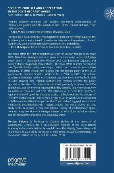 This book offers the first comprehensive study of Spanish foreign policy since 2000. Based on privileged access to some of Spain's most important foreign policy actors - including Prime Minister José Luis Rodríguez Zapatero and Foreign Minister Miguel Ángel Moratinos - the book offers an insider account of how Spanish foreign policy was shaped within the context of international diplomacy. It offers crucial new insights into the foreign policy of the PSOE governments (Spanish Socialist Workers' Party, 2004 to 2011). The volume considers the changes on the international stage since the fall of the Berlin Wall in 1989, showing how regional conflicts and tensions affected the policy agendas of the West. To increase security and prosperity at home, the 2004 Spanish socialist government reasoned that they could no longer rely exclusively on unilateral measures, old Cold War alliances or a 'Spain-first' approach. Against the backdrop of this changing world, the book explores the concept of 'effective multilateralism' put forward by the PSOE, in which Spain abandoned its hitherto unconditional support for the US and instead engaged in a series of multilateral collaborations with regions around the world. Above all, this study seeks to provide a new international history of contemporary Spain, demonstrating how domestic changes intersected with global transformations, and put forward the argument that diplomacy works.