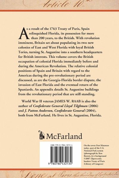As a result of the 1763 Treaty of Paris, Spain relinquished Florida, a land it had possessed for over 200 years, to the British. With revolution imminent, Britain set about populating its two new colonies of East and West Florida with loyal British Tories, ultimately turning St. Augustine into a southern American headquarters for British interests. This volume details the British occupation of colonial Florida immediately before and during the American Revolution with emphasis on the effect this possession had on the course of the war. Beginning with a brief summary of Spanish history, it takes a look at the relative colonial positions of Spain and Britain with regard to the Americas during the pre-revolutionary period. The Georgia-Florida border dispute, the invasion of East Florida and the eventual return of the Spaniards are also discussed. Finally, an appendix details St. Augustine buildings from the revolutionary period which are still standing today.