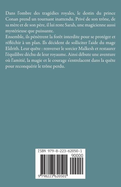 Dans l'ombre des tragédies royales, le destin du prince Conan prend un tournant inattendu. Privé de son trône, de sa mère et de son père, il lui reste Sarah, une magicienne aussi mystérieuse que puissante. Ensemble, ils pénètrent la forêt interdite pour se protéger et réfléchir à un plan. Ils décident de solliciter l'aide du mage Eldrith. Leur quête : renverser le sorcier Malkesh et restaurer l'équilibre déchu de leur royaume. Ainsi débute une aventure où l'amitié, la magie et le courage s'entrelacent dans la quête pour reconquérir le trône perdu.