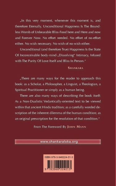 Shankara's Spandaloka Book reveals and offers the Process, which is necessary for Transcendental Spiritual Realization And Liberation. The Transcendental Spiritual Realization And Liberation Process, as It Is Implied and Meant in this Book, should not be confused with some kind of therapy or education for achieving or fulfilling something that can only be achieved and fulfilled by a right and balanced life according to the Laws Of Reality and the healthy possibilities of the respective culture. Of course It can also have and has many therapeutical-healing or educational-instructive beneficial effects for a right and balanced life, yet this is not Its Primary Field Of Operating Manifestation and Transfiguration. It works best and is more suitable for all who cannot help but step forward; towards The Truth Of Their Nature. In this case, it is of great advantage to be grounded in the conscious responsibility necessary for a right and balanced life, whether totally or at least partially, but surely on the way. What is the nature and the anatomy of The Transcendental Spiritual Realization and Liberation Process? In Its Essence It Is The Conscious Process that allows Existing, Living and Being as an Expression Of The Transcendental and Radiant Reality Itself. Spirituality can be defined in different ways. Therefore the terms or notions ¿spirituality¿ and ¿spiritual¿ do not always refer to the same. The term ¿spiritual¿ is used by Shankara in the Sense of Spirit as Kundalini Mahashakti, Which Is The Vibrant Force, Field Or Space As Main and First Agent Of Radiant Paramrita Spanda, Which Is The First And Transcendentally Free And Everything Else Generating and Containing Reality. This Book Is A Description Of The Transcendental Spiritual Realization and Liberation Process And An Invitation For Everyone Who Is Inevitably And Truly Interested In Its Transformational Force And Nature. From the foreword by John Mann: ¿There are many ways for the reader to approach this book: as a Scholar, a Philosopher, a Linguist, a Theologian, a Spiritual Practitioner or simply as a human being. There are also many ways of describing the book itself: As a Non-Dualistic Vedantically-oriented text to be viewed within that ancient Hindu tradition; as a carefully worded description of the inherent dilemma of the human condition; as an original prescription for the resolution of that condition.¿