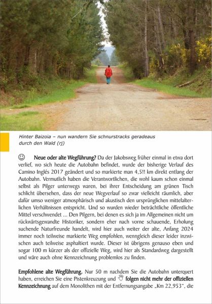 Der Camino Inglés beginnt an der nordspanischen Küste und führt von A Coruña oder Ferrol ins spanische Inland und durch die schöne galicische Naturlandschaft nach Santiago de Compostela. Der Pilgerführer liefert eine detaillierte Beschreibung für beide Wegvarianten, die neben Informationen zu den Sehenswürdigkeiten der Region auch ausführliche Hinweise zu den Unterkünften am Weg enthält.Beschrieben wird außerdem der Weiterweg von Santiago nach Finisterre, auf dem man den 74 bzw. 112,5 km langen Camino Inglés noch einmal um 90 km verlängern kann, und es finden sich Tipps für den Weg entlang der Costa del Morte über Muxía zurück nach A Coruña. Karten im Maßstab 1:100.000, Höhenprofile, zahlreiche Abbildungen und allgemeine Informationen zum Pilgern und zur Planung der Wanderung runden den handlichen Pilgerführer ab.