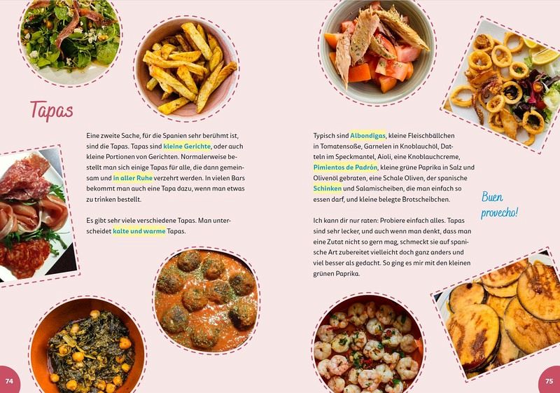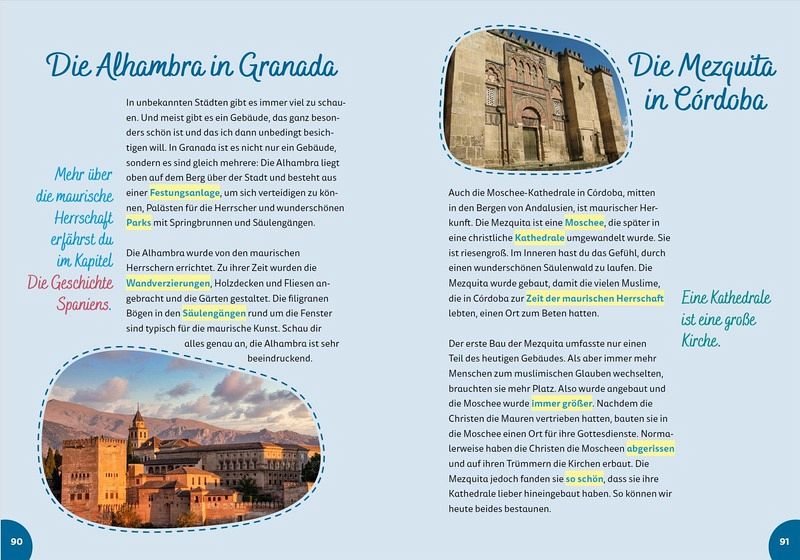 Spanien for kids ist ein Reiseführer für Kinder, der alle Fragen beantwortet, die ihnen auf einer Reise in den Sinn kommen. Was es hier Leckeres zu essen gibt, welche Pflanzen und Tiere zu entdecken sind und welche spannenden Geschichten sich hinter den beeindruckenden Mauern der Alhambra verstecken, das alles finden sie im Buch.Ein Rundum-Sorglos-Begleiter für alle, die bei ihrer Reise nach Spanien mehr über das Land erfahren wollen. Echt kindgerecht geschrieben, bunt illustriert, mit Malseiten und Rätseln und im praktischen und stabilen Format, damit das Buch auch im Kinderrucksack und am Strand eine Reise gut übersteht.Die perfekte Reisevorbereitung für Kinder: Länderkunde, Geheimtipps und jede Menge Mitmach-Ideen!Beeindruckende Sehenswürdigkeiten, faszinierende Sitten und Gebräuche und unvergessliche Erlebnisse: Reisen mit der Familie sind für alle Beteiligten ein waschechtes Abenteuer! Die Kinderreiseführer von World for Kids sind dabei der ideale Begleiter, von der Vorbereitung bis zum Abschied vom liebgewonnenen Urlaubsland. Egal, ob spannende Fakten zur Geschichte des Reiselandes, ausgesuchte Vokabeln, die Lust auf fremde Sprachen machen, oder Anekdoten zu kulturellen Gepflogenheiten: Die Reihe bietet jede Menge altersgerecht erzähltes Reisewissen für Kinder ab 6. Für reichlich Beschäftigung vor, während und nach der großen Fahrt sorgen die zahlreichen Mitmach-Seiten. Abwechslungsreiche Spielideen, leckere Rezepte sowie landestypische Attraktionen, Pflanzen und Tiere zum Ausschneiden laden dazu ein, das Reiseziel noch besser kennenzulernen - und sorgen für gute Laune, sogar an verregneten Urlaubtagen! - World for kids: Die schönsten Reiseziele mit Kindern, altersgerecht präsentiert- Erstaunliche Einblicke in Sitten und Bräuche, fremde Länder und ihre Menschen- Lohnenswerte Ausflugsziele und Sehenswürdigkeiten, die Kinder begeistern- Malen, Rätseln, Basteln oder Kochen: ein interaktives Mitmachbuch, das auch lange nach der Reise Freude bereitet- Macht Kindern zwischen 6 und 12 Jahren Lust auf das große Abenteuer Reisen- Auch geeignet für den Sachunterricht in der GrundschuleWer die Taschen packt, sollte diesen Kinderreiseführer im Gepäck haben. So wird der Urlaub mit Familie für Groß und Klein garantiert zum Highlight!