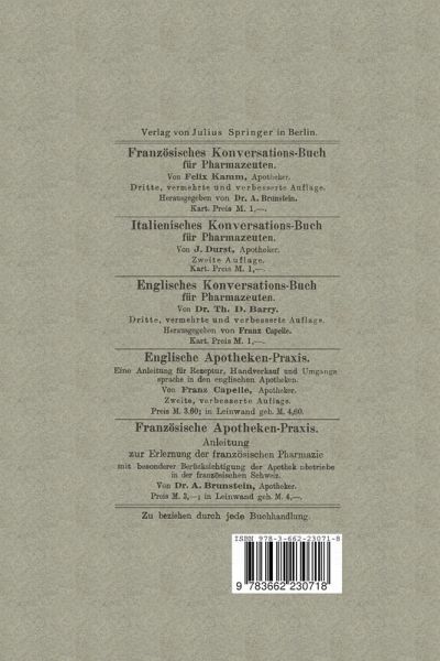 Spanisches Konversationsbuch für die Pharmazie und ihr verwandte Gebiete / Manual Práctico de Conversación en Español para el uso de la Clase Farmacéutica y de las que con élla se relacionan