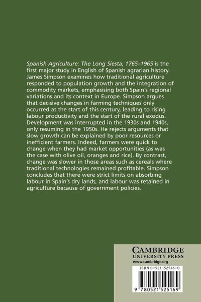 In the first major study in English of Spanish agrarian history, James Simpson examines how traditional agriculture responded to population growth and the integration of commodity markets. He argues that decisive changes in farming techniques only occurred at the start of this century; development was then interrupted by the Spanish Civil War and subsequent short-sighted government policies, only resuming in the 1950s. This comprehensive study will be of relevance to historical geography and agrarian history, as well as economic history.