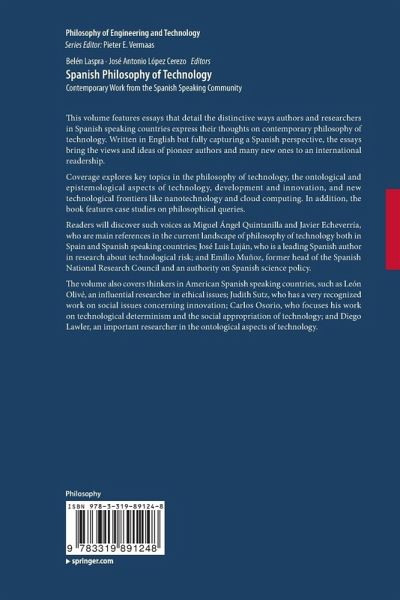 This volume features essays that detail the distinctive ways authors and researchers in Spanish speaking countries express their thoughts on contemporary philosophy of technology. Written in English but fully capturing a Spanish perspective, the essays bring the views and ideas of pioneer authors and many new ones to an international readership.