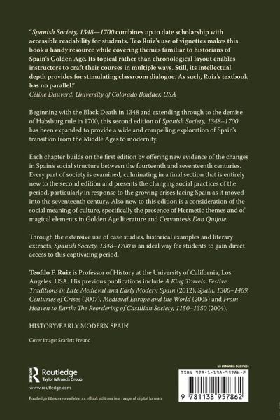 Beginning with the Black Death in 1348 and extending through to the demise of Habsburg rule in 1700, this second edition of Spanish Society, 1348-1700 has been expanded to provide a wide and compelling exploration of Spain's transition from the Middle Ages to modernity. Each chapter builds on the first edition by offering new evidence of the changes in Spain's social structure between the fourteenth and seventeenth century. Every part of society is examined, culminating in a final section that is entirely new to the second edition and presents the changing social practices of the period, particularly in response to the growing crises facing Spain as it moved into the seventeenth century. Also new to this edition is a consideration of the social meaning of culture, specifically the presence of Hermetic themes and of magical elements in Golden Age literature and Cervantes' Don Quijote. Through the extensive use of case studies, historical examples and literary extracts, Spanish Society is an ideal way for students to gain direct access to this captivating period. ¿ ¿ ¿