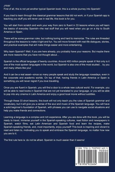 If you're looking to learn Spanish fast without having to go through boring textbooks, then keep reading... Are you a beginner to Spanish who wants to learn the language in a fast and simple way? Have you tried learning Spanish through classical grammar lessons or a Spanish app teaching you stuff you will never use in real life? Do you finally want to say goodbye to scratching your head in confusion when you're trying to learn Spanish? If so, then make yourself at home. You see, we don't believe that you have to struggle to learn Spanish. With Spanish: Learn Spanish for Beginners: A Simple Guide that Will Help You on Your Language Learning Journey, you will start from scratch and work your way from zero to fluent in 33 lessons where you will learn the basics of everyday Spanish—the real stuff that you will need when you go on a trip to South America or Spain. There will be some grammar rules, but nothing boring and hard to memorize. The rules are threaded throughout the lessons to make it light and fun. You will move forward with real-life dialogues, stories, and practical examples that will make things easier and more entertaining. So if you have a burning desire to learn Spanish because of all the doors it could open for you, then scroll up and click "add to cart"