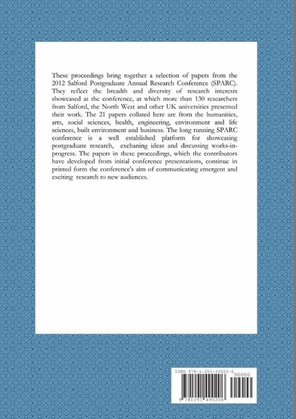 These proceedings bring together a selection of papers from the 2012 Salford Postgraduate Annual Research Conference (SPARC). They reflect the breadth and diversity of research interests showcased at the conference, at which over 130 researchers from Salford, the North West and other UK universities presented their work. 21 papers are collated here from the humanities, arts, social sciences, health, engineering, environment and life sciences, built environment and business.