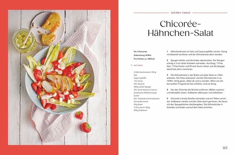 Zwischendurch kommen deshalb auch Rezepte, die weder mit Spargel, noch mit Erdbeeren zu tun haben (wie auf dem Cover ja auch angekündigt). Da war ich fast enttäuscht, obwohl auch diese Rezepte lecker und leicht aussehen. Aber mir haben es einfach die tollen Spargelrezepte total angetan. Und gerade als ich dachte, dass mir ein bisschen das Herzhafte an dem Buch fehlt, kamen dann doch noch Rezepte mit Fleisch.