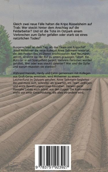 Gleich zwei neue Fälle halten die Kripo Rüsselsheim auf Trab: Wer steckt hinter dem Anschlag auf die Feldarbeiter? Und ist die Tote im Ostpark einem Verbrechen zum Opfer gefallen oder starb sie eines natürlichen Todes?Ausgerechnet an dem Tag, als das Team von Kripochef Josef Mitheimer die neue Kollegin Anne Seltmann erwartet, die den Posten des im Dienst erschossenen Axel Neumann antritt, erreicht sie der Ruf zu einem grausigen Tatort. Ein Auto ist in ein Spargelfeld gerast, mehrere Personen wurden getötet. Wer oder was steckt dahinter? Wer sind die Opfer und warum mussten sie sterben? Während Hannah, Hardy und Çetin gemeinsam mit Kollegen aus Groß-Gerau ermitteln, wird Mitheimer zu einem Leichenfund im Ostpark gerufen. Anne Seltmann begleitet ihn und muss sich, schneller als erwartet, ins Team einfügen und erste Bewährungsproben bestehen. Derweil gerät Hannahs Leben auch privat aus den Fugen. Die Kommissarin steht vor einer Entscheidung, die alles verändern wird.