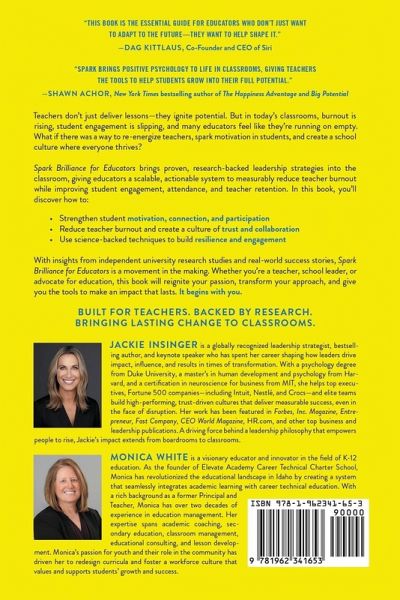 Built for teachers. Backed by research. Bringing lasting change to classrooms. Teachers don't just deliver lessons-they ignite potential. Yet, in today's classrooms, burnout is rising, student engagement is slipping, and many educators feel like they're running on empty. What if there was a way to re-energize teachers, spark motivation in students, and create a school culture where everyone thrives? Spark Brilliance for Educators brings proven, research-backed leadership strategies into the classroom, giving teachers a scalable, actionable system to measurably reduce teacher burnout while improving student engagement, attendance, and teacher retention. In this book, you'll discover how to: Strengthen student motivation, connection, and participation Reduce burnout and create a culture of trust and collaboration Use science-backed techniques to build resilience and engagement Foster a classroom where every student-and teacher-can thrive With insights from independent university research studies and real-world success stories, Spark Brilliance for Educators isn't just another book-it's a movement. Whether you're a teacher, school leader, or advocate for education, this book will reignite your passion, transform your approach, and give you the tools to make an impact that lasts. Ready to transform your classroom? The spark starts here.