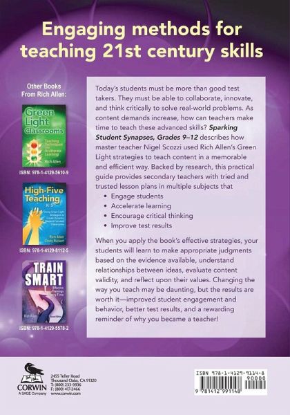 Engaging methods for teaching 21st-century skills Today's students must be able to collaborate, innovate, and think critically to solve real-world problems. As content demands increase, how can teachers make time to teach these advanced skills? Find practical solutions in the story of how master teacher Nigel Scozzi used Rich Allen's Green Light strategies to teach content in a memorable and efficient way. Backed by research, this practical guide provides secondary teachers with tried and trusted lesson plans in multiple subjects that: Engage students Accelerate learning Encourage critical thinking Improve test results ·