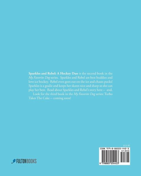 Sparkles and Rebel: A Hockey Duo is the second book in the My Favorite Dog series. Sparkles and Rebel are best buddies and love ice hockey. Rebel even goes out on the ice and chases pucks! Sparkles is a goalie and keeps her skates nice and sharp so she can play her best. Read about Sparkles and Rebel's story here -- and, Look for the third book in the My Favorite Dog series: Turbo Takes The Cake -- coming soon!