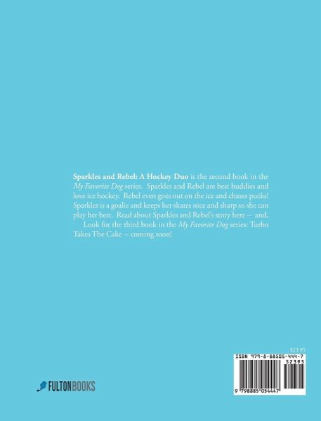 Sparkles and Rebel: A Hockey Duo is the second book in the My Favorite Dog series. Sparkles and Rebel are best buddies and love ice hockey. Rebel even goes out on the ice and chases pucks! Sparkles is a goalie and keeps her skates nice and sharp so she can play her best. Read about Sparkles and Rebel's story here -- and, Look for the third book in the My Favorite Dog series: Turbo Takes The Cake -- coming soon!