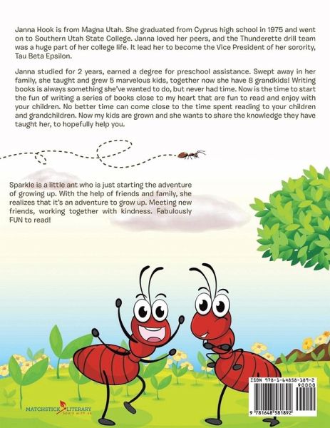 Sparkle is a little ant who is just starting the adventure of growing up. With the help of friends and family, she realizes that it's an adventure to grow up. Meeting new friends, working together with kindness. Fabulously fun to read!