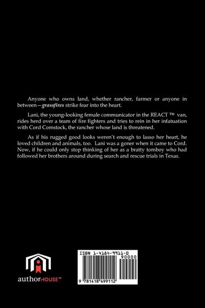 Anyone who owns land, whether rancher, farmer or anyone in between-grassfires strike fear into the heart. Lani, the young-looking female communicator in the REACT T van, rides herd over a team of fire fighters and tries to rein in her infatuation with Cord Comstock, the rancher whose land is threatened. As if his rugged good looks weren't enough to lasso her heart, he loved children and animals, too. Lani was a goner when it came to Cord. Now, if he could only stop thinking of her as a bratty tomboy who had followed her brothers around during search and rescue trials in Texas.