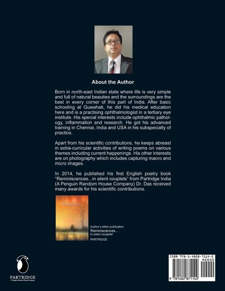 Dr. Dipankar Das is an ophthalmologist by profession. He has an ardent interest in literature, particularly in English poetry. He had introduced the concept of "Photo-Poems" in 2013. He loves to create mini poems on various current and past themes, including creation on nature, theology, life, places, seasons, and many more. He is a keen photographer, painter and likes to correlate his creative verses with his photographs and his paintings/arts. Dr. Das had published 4 books on English poetry, titled 'Reminiscences - In silent couplets!' (2014), 'Sparks of Joy' (2016), 'Firefly: On little wings' (2017) and 'Soul of Indigo' (2018) from Partridge India (A Penguin Random House Company).