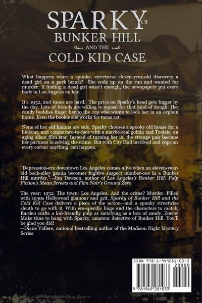 Lots of characters have it bad, in my Bunker Hill neighborhood smack dab in the middle of Los Angeles, but I've had it rougher than most.There may be something to this 13th business.That's my birthday, and I'm learning to dread seeing it roll around. My mother died on one birthday. The cousins dumped me on my last. This year, 1932, I found a dead kid on a park bench. It's my eleventh birthday, and the day me, Sparky, ended up on the run, wanted for murder. If the dead girl wasn't enough, the dirty newspapers pinned every body in LA on me, and even blamed me for the Great War. I wasn't even born then. The price on my head got bigger by the day. It was up to me to find out who killed the girl and why I got framed, before I ended up dangling from the hangman's rope.