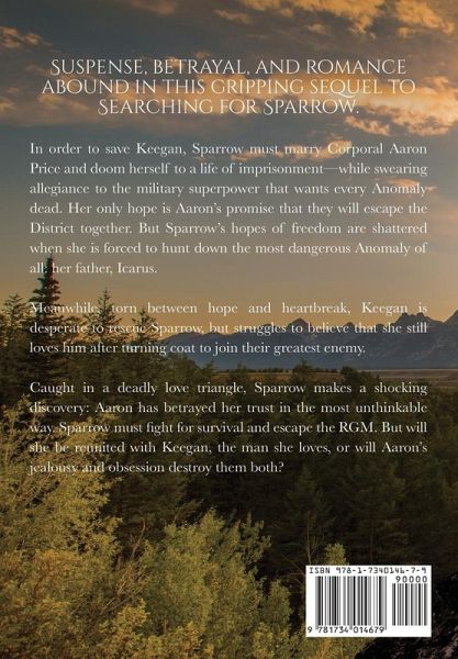 Suspense, betrayal, and romance abound in this gripping sequel to Searching for Sparrow. In order to save Keegan, Sparrow must marry Corporal Aaron Price and doom herself to a life of imprisonment-while swearing allegiance to the military superpower that wants every Anomaly dead. Her only hope is Aaron's promise that they will escape the District together. But Sparrow's hopes of freedom are shattered when she is forced to hunt down the most dangerous Anomaly of all: her father, Icarus. Meanwhile, torn between hope and heartbreak, Keegan is desperate to rescue Sparrow, but struggles to believe that she still loves him after turning coat to join their greatest enemy. Caught in a deadly love triangle, Sparrow makes a shocking discovery: Aaron has betrayed her trust in the most unthinkable way. Sparrow must fight for survival and escape the RGM. But will she be reunited with Keegan, the man she loves, or will Aaron's jealousy and obsession destroy them both?