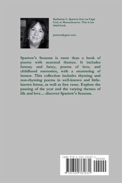 Sparrow's Seasons is more than a book of poems with seasonal themes. It includes fantasy and fancy, poems of love, and childhood memories, with a smattering of humor. This collection includes rhyming and non-rhyming poems in well-known and little-known forms, as well as free verse. Explore the passing of the year and the varying themes of life and love.... discover Sparrow's Seasons.
