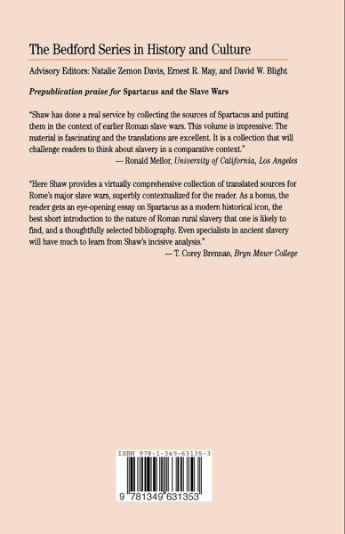 In 72 B.C., in the heart of Rome's Mediterranean empire, a slave named Spartacus ignited one of the most violent episodes of slave resistance in the history of the Roman Empire - indeed in the world annals of slavery. This volume organizes original translations of 80 Greek and Latin sources into topical chapters that look at the daily lives of slaves trained as gladiators and those who labored on farms in Italy and Sicily, including accounts of revolts that preceded and anticipated that of Spartacus. In a carefully crafted introductory essay, Shaw places Spartacus in the broader context of first and second century B.C. Rome, Italy and Sicily and explains why his story continues to be a popular symbol of rebellion today. The volume also includes a glossary, chronology, selected bibliography, three maps, an annotated list of ancient writers, and questions for consideration.