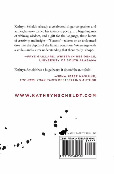 Kathryn Aurelia Scheldt is an internationally acclaimed songwriter, author, and recording artist. Scheldt has performed in a variety of venues, including The Bluebird Cafe in Nashville, Ernest Tubb Midnight Jamboree, The Southern Festival of Books, The Alabama Writers Forum, and Thacker Mountain Radio. Her song "Last Shrimp Boat" anchored the soundtrack for the Emmy-winning documentary, In the Path of the Storms. Formerly a music professor who has taught in several southern universities including Queens University of Charlotte and the University of South Alabama, Scheldt holds a master's degree in music performance. Spasms is Scheldt's first published book of poetry.